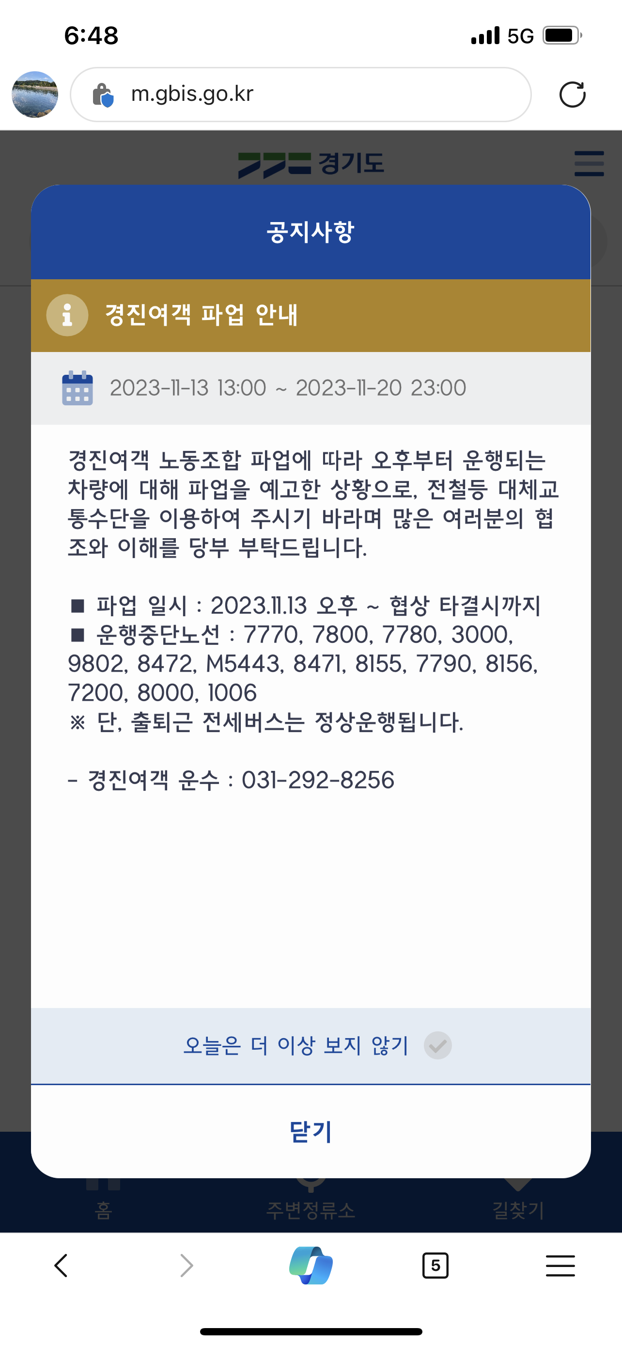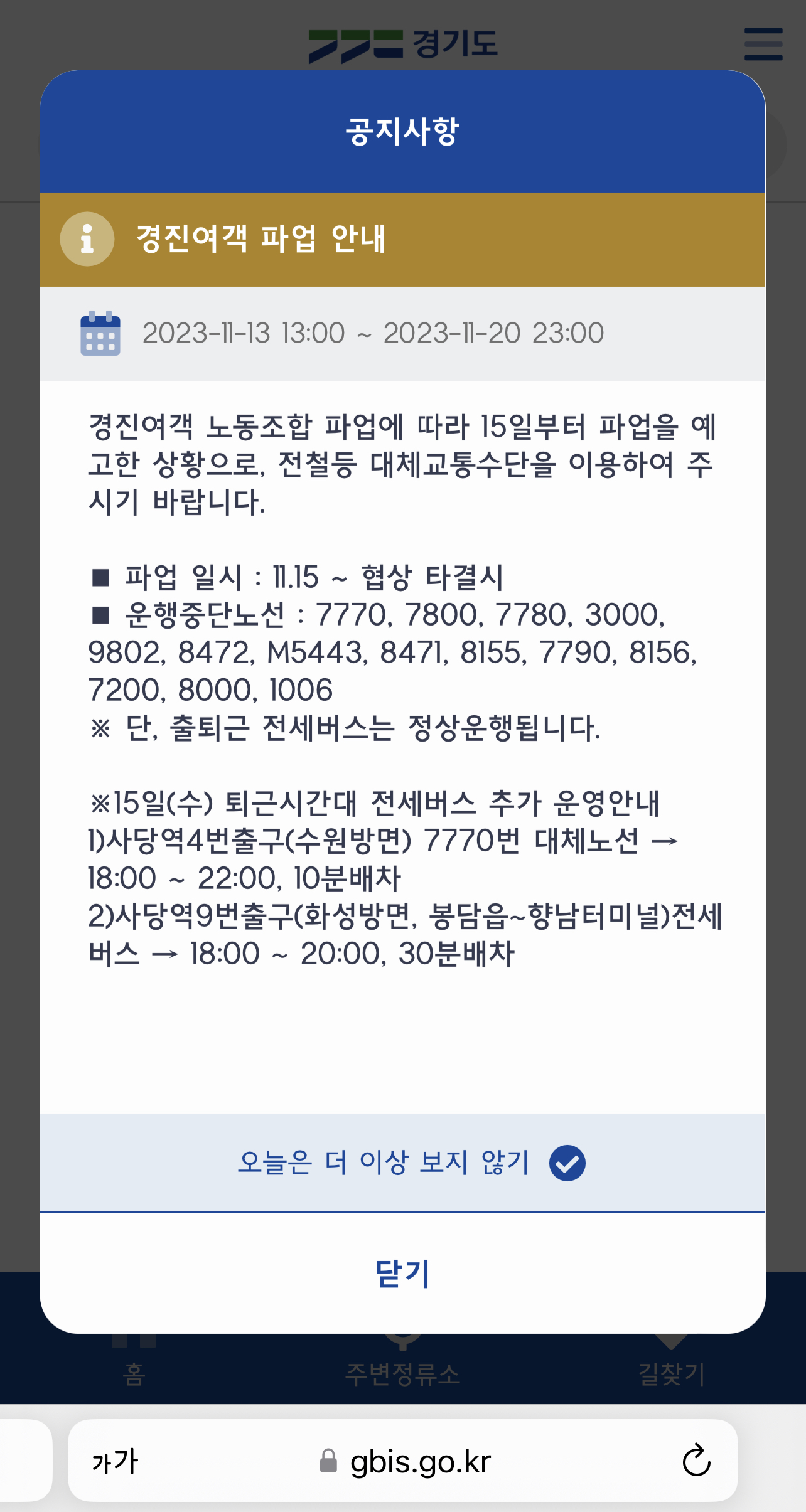 11.15(수) 16:00 경진여객 파업 7770, 7800, 7780, 3000, 9802, 8472